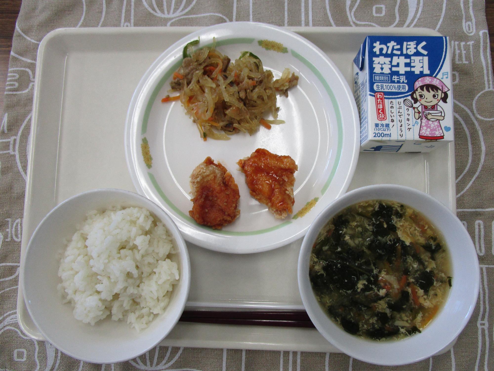 ごはん 牛乳 トックスープ ヤンニョムチキン チャプチェ |